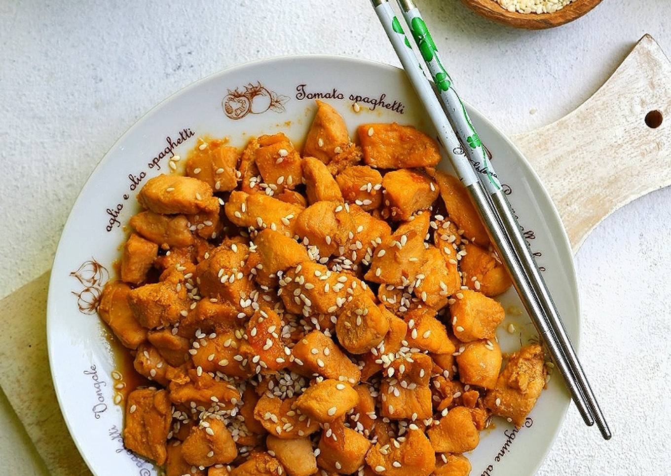 - Masak hingga bumbu meresap, sebelum diangkat tambahkan minyak wijen, aduk sebentar. Matikan api. Taburi biji wijen. Sajikan 👌