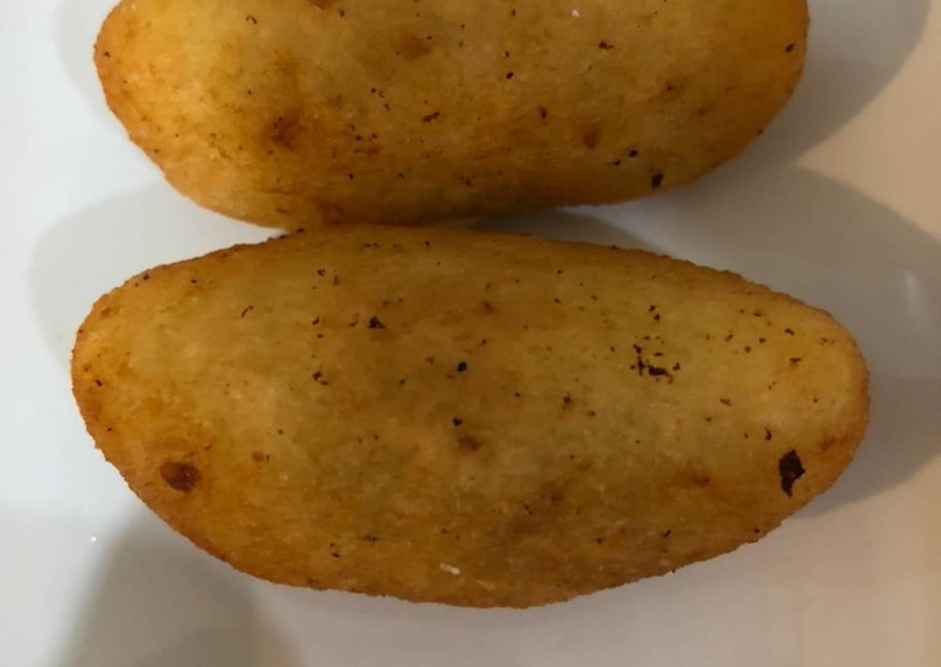 - Bentuk lonjong singkong ukuran seibu jari dengan isian tempe didalamnya.