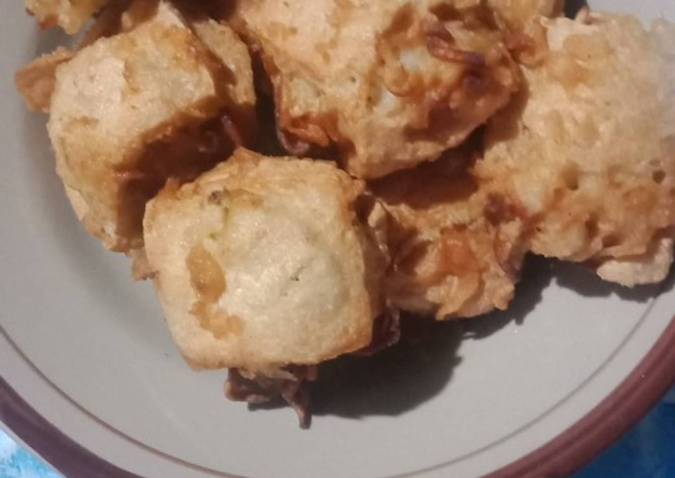- Celupkan tahu kedalam adonan terigu yg sudah dicampur air. Kemudian goreng sampai matang