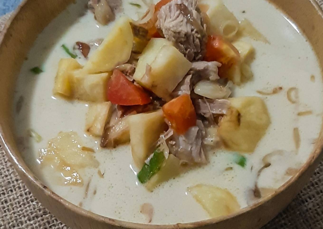 - Goreng terpisah kentang, lalu masukan ke rebusan daging