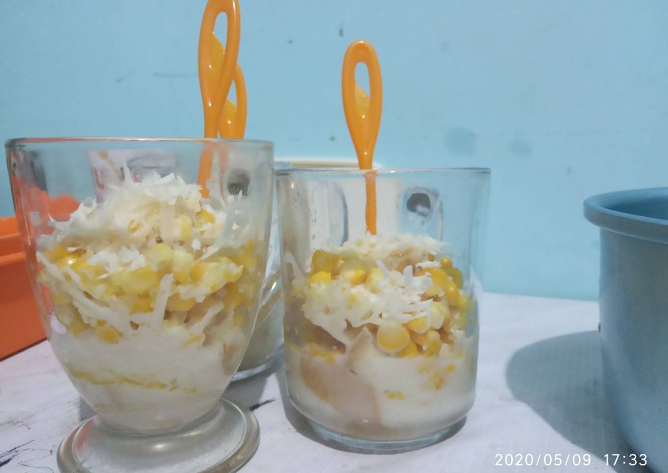 - Sambil menunggu, sobek roti tawar dan tata di gelas. Tambahkan krimer diatasnya kemudian jagung yg sudah direbus (jagungnya dulu yaa karena kita pakai roti tawar, jadi kuahnya paling akhir biar nggak "hilang" terserap)