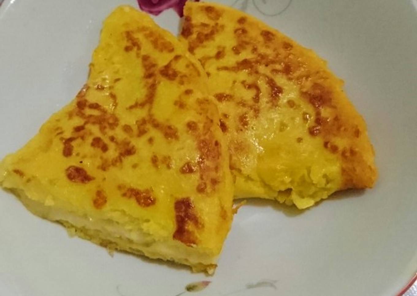- Balik adonan lalu tambahkan keju parut/mozarela/meises