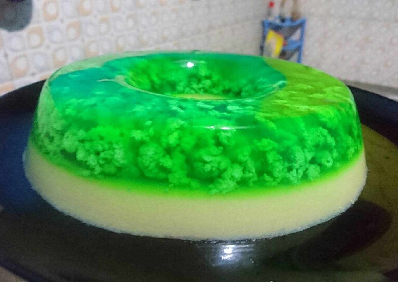 - Tuang diatas puding lumut yang sudah dingin tadi,biarkan dingin,masukan kulkas.
