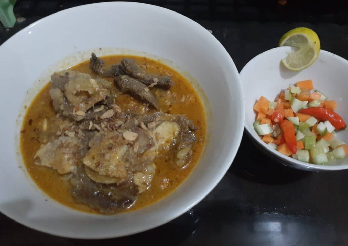 - Pelengkap : iris dadu wortel dan timun tambahkan cabe rawit butiran dan beri air jeruk nipis